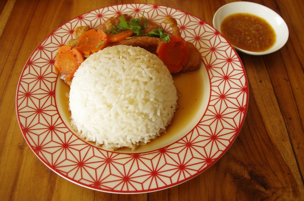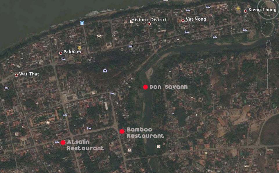 From the bamboo restaurant it’s about a 10 minutes stroll to this place. Head back to Wat Visounarath and keep going along Manomai Road. Pass the first robot and you’ll see “Atsalin” restaurant on your left. Some vegetarian dishes are only 12.000Kip and if you add meat they’ll charge another 3000 Kip which is still quite reasonable by Luang Prabang standards. Try the steamed rice with duck (“Khau tschau pet”) and don’t forget the chili sauce – you will enjoy it!
