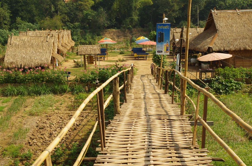 It’s only open during the dry season of the year as it is built on a sandbank of the Nam Khan and can be reached by a shaky bamboo bridge only.